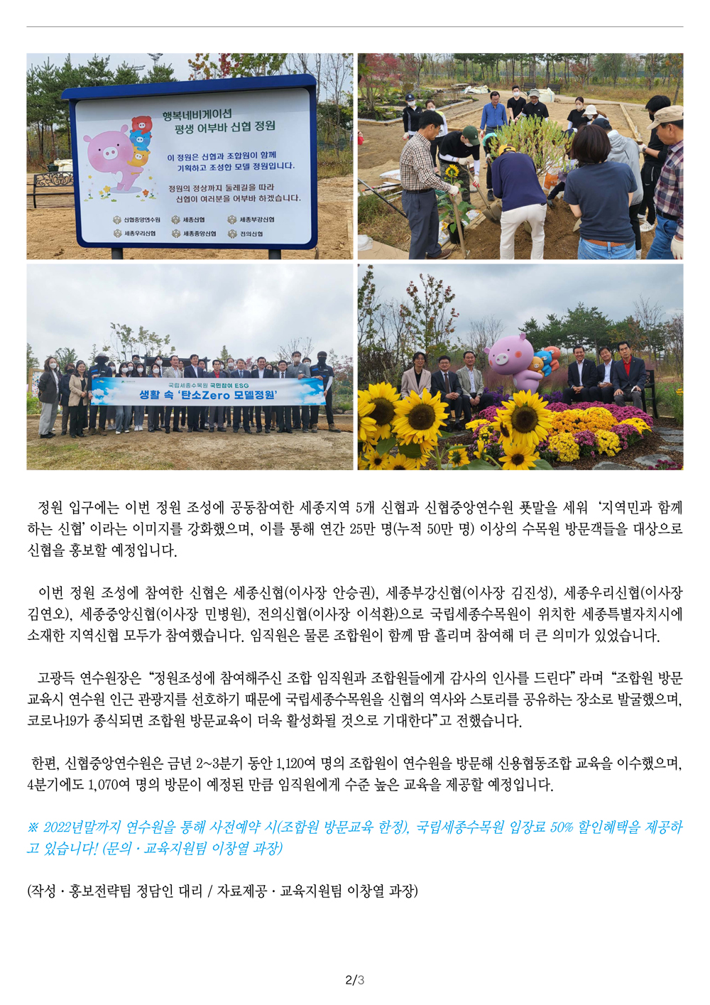 국립세종수목원 '평생어부바 신협 모델정원' 조성